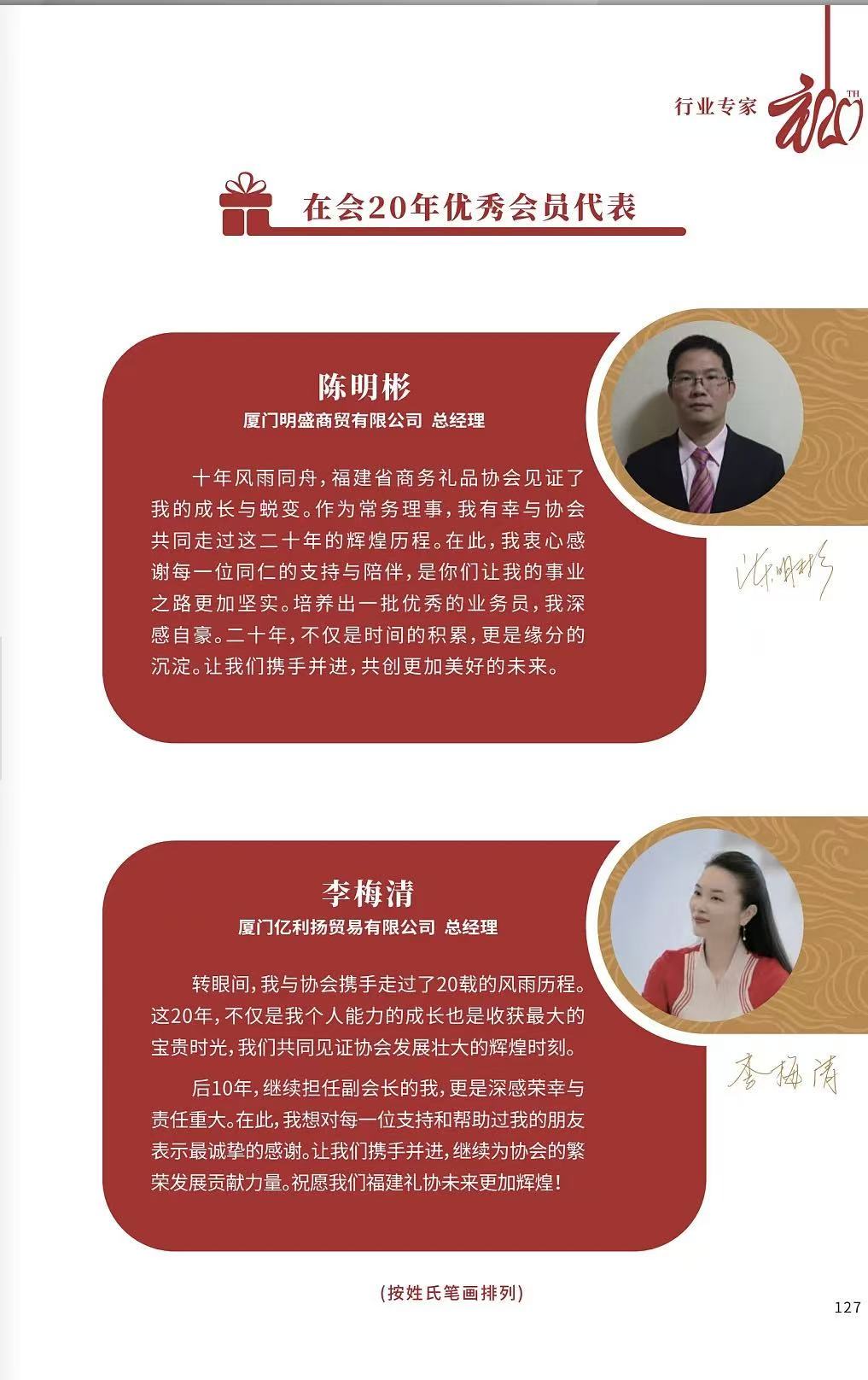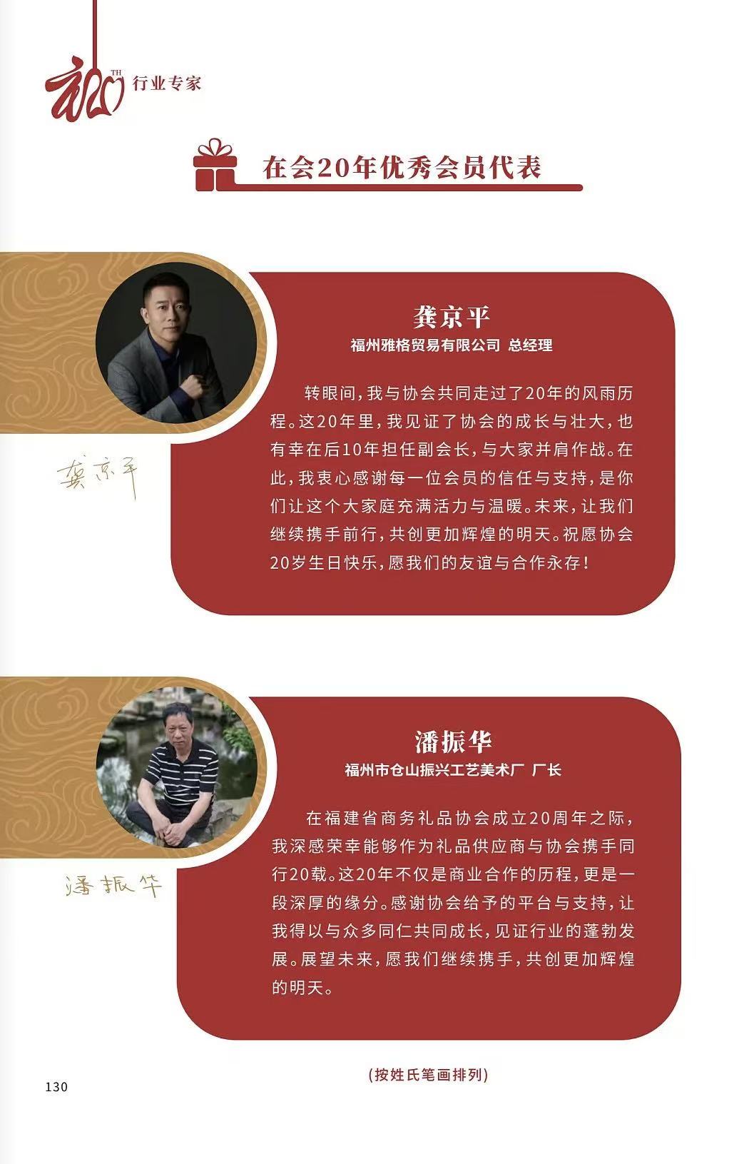 在会20年优秀会员代表
